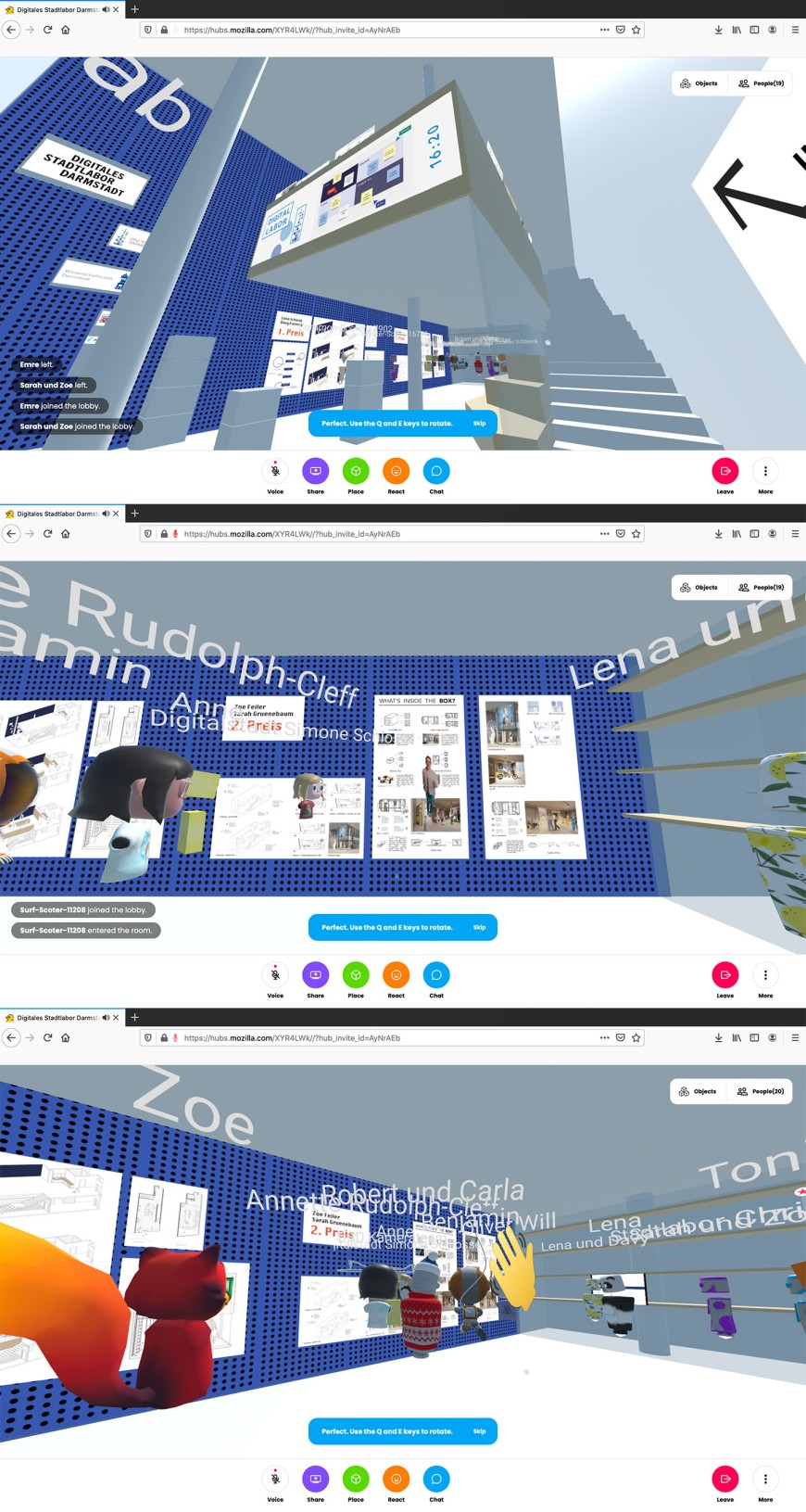 Der Wettbewerbsreader steht ab sofort zum Download zu Verfügung (55 MB) (wird in neuem Tab geöffnet). Weitere Infos zum digitalen Ausstellungsraum in Mozilla Hubs werden in Kürze zur Verfügung gestellt.