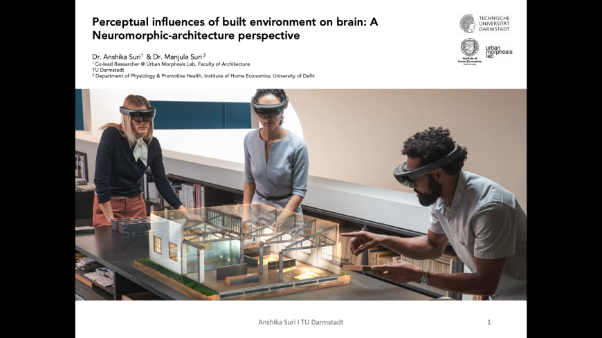 The conference ‘Environments by Design: health wellbeing and place’ (wird in neuem Tab geöffnet) seeks to resurface dialogue on long-standing areas of research into health, wellbeing and healthy cities. Dr Suri presented the intersection of neuroscience research with planning and architectural design. Understanding of perceptual influences of built environment on the human brain, ‘neuro-architecture’, can provide architects, planners, health care providers, governance actors and development practitioners a theoretical framework to adapt and create more responsive, healthy and sustainable public and built spaces.