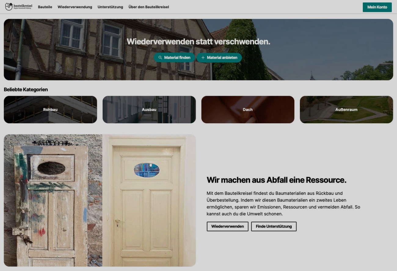 Das interdisziplinäre BMBF-Forschungsvorhaben „Wiederverwendung von Baumaterialien innovativ (WieBauin)“ entwickelt neue Herangehensweisen und Instrumente, um das Stoffstromsystem der Baumaterialien in der Projektregion Darmstadt/Darmstadt-Dieburg zum beiderseitigen ökologischen und ökonomischen Vorteil zu verbessern. Ziel ist es, in wachsendem Maße bereits einmal verbaute Baumaterialien einer erneuten Nutzung in Gebäuden und deren Umfeld zuzuführen. Der Fachbereich Architektur ist mit dem Fachgebiet Entwerfen und Stadtentwicklung (FG est) im Projekt vertreten. Das FG est hat hierzu in der ersten Projektphase Bauprodukte im Gebäudebestand der Projektgemeinden Münster (Hessen) und Otzberg identifiziert und systematisch erhoben. Darauf aufbauend wurde durch die weiteren am Projekt beteiligten Fachgebiete am Fachbereich Bauingenieurwesen und Geodäsie eine Stoffstromanalyse sowie ein Geschäftsmodell für die mögliche regionale Vermarktung von zur Wiederverwendung geeigneten Bauprodukten entwickelt. Das FG est erarbeitete ferner ein kombiniertes Weiterbildungspaket für Bauherren, Planer und Handwerksbetriebe, bestehend aus einem interaktiven Kalkulator-Tool zur Ermittlung wiederverwendbarer Baustoffe sowie ein Handbuch zur Unterstützung von Immobilieneigentümern, Bauherren, Planern und Handwerkern. Mit Beginn der zweiten Projektphase im Oktober 2021 ist das FG est in die Öffentlichkeitsarbeitsstrategie des Projektes eingebunden und begleitet die fachliche Schulung der kommunalen Verwaltungen sowie die Beratung von Bauherren, Handwerk und Architekten in Bezug auf das Bauen mit gebrauchten Bauprodukten. |