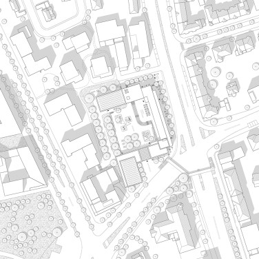 The old gymnasium and its expansion will serve as a community building, with its main address facing the forecourt. It acts as a hinge between the forecourt and the inner courtyard. The block and the sports hall are accessed from the courtyard.