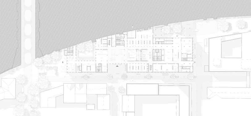 Zwei kleinere (Interims-)Gebäude am nördlichen Ende des Grundstücks stehen für die Entwurfsaufgabe zur Disposition. Es darf an die Bahntrassenwand angebaut werden. Für das zu entwerfende neue Gebäude des Fachbereichs Schauspiel der Hochschule für Musik, Theater und Medien Hannover gilt keine Höhenbeschränkung.