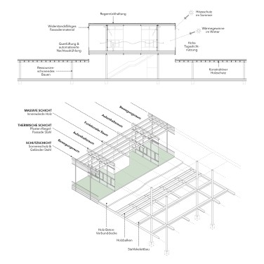 Furthermore, the planning was to include necessary operational spaces such as administrative, technical, and storage areas, as well as break and social rooms for ÖBB staff, security and cleaning personnel, and postal workers.