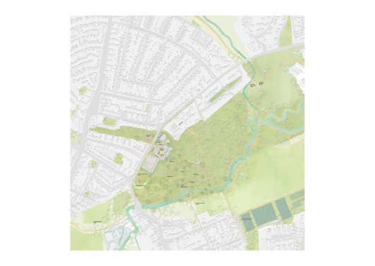 The Garden Erft as the center of the eight districts. It is already a versatile, picturesque place with existing recreational facilities that are expanded and integrated into a holistic landscape strip. The Garden Erft connects the districts and creates a new center. Through garden gates, one enters thematic gardens, each district focusing on different topics.