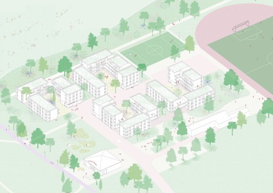 The Erft Valley will be established as the new center of the neighborhood through various design and infrastructural measures. A ping-pong park will provide accessible sports opportunities for spontaneous physical activity and social interaction. Yoga and relaxation zones will create spaces for relaxation and mindfulness in a natural setting. New plantings and the promotion of biodiversity will enhance the ecological quality of the area. Self-picking beds will offer educational and participatory activities that foster environmental awareness and nature experiences. Additionally, the redesign of pathways and squares will improve the connection to surrounding residential areas and schools.