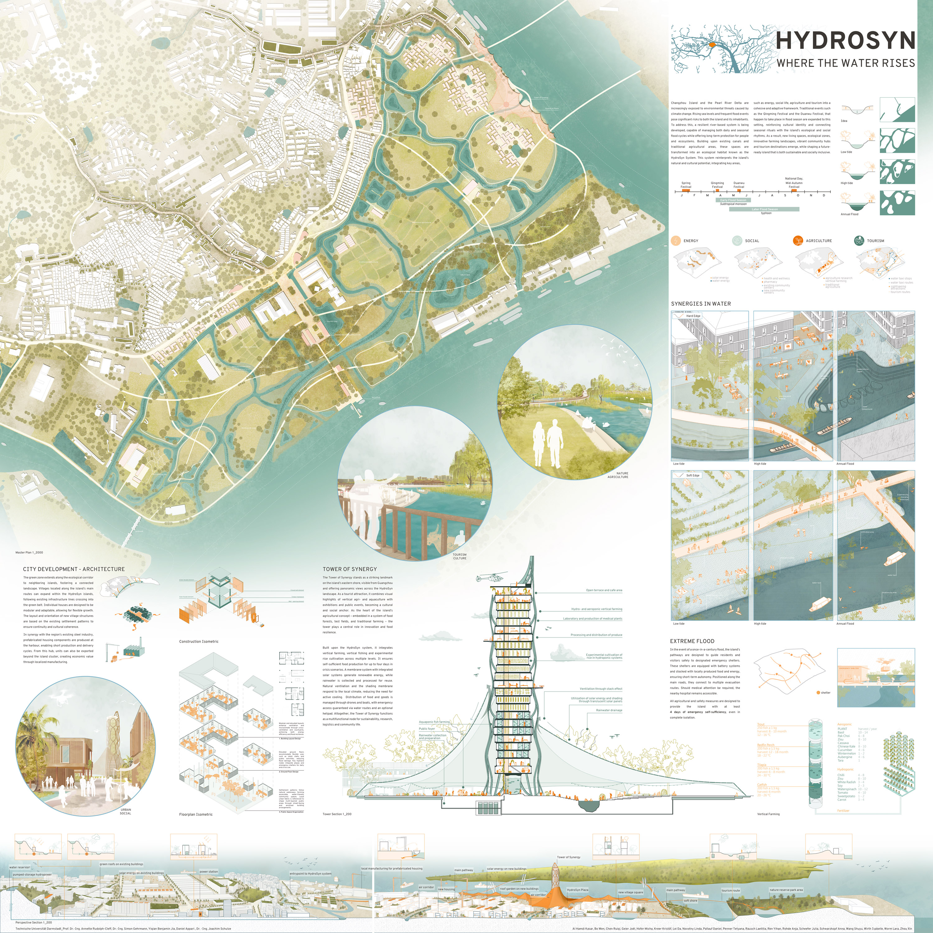 Ein Team von Studierenden des Fachbereichs Architektur der TU Darmstadt hat beim internationalen Wettbewerb Designing Resilience Global 2025 (DRG) eine Lobende Erwähnung erhalten. Unter dem Titel „Hydrosyn – Where the Water Rises“ entwickelten die Studierenden eine wassersensible Strategie für die Insel Changzhou im Perlflussdelta bei Guangzhou.