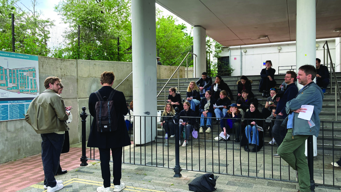 Um die brutalistische Siedlung Thamesmead besser in ihren geschichtlichen Kontext einordnen zu können, besuchten wir in den darauffolgenden Tagen eine Vielzahl an Projekten des modernen Städte- und Wohnungsbaus in London. Hierzu zählten das Barbican Estate, Golden Lane Estate, Balfron Tower, Whittington Estate, Southbank Centre, und Brunswick Centre. Aber auch neustrukturierte und nachverdichtete Siedlungen wie Robin Hood Gardens, Agar Grove Estate, Maiden Lane Estate, und Kiln Place regten zu kritischen Diskussionen an.
